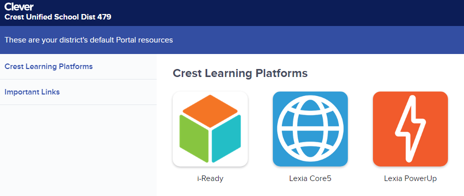 Clever is an application that allows students to access all of their learning applications from a single, easy to use interface. Clever is utilized by all Crest students to login to applications like Lexia and IXL. Below, you will find a simple guide to utilizing Clever on iPads and Chromebook/Laptop computers.